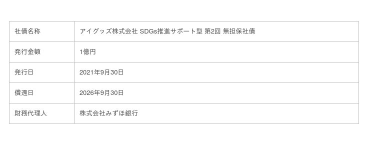 詳細 株式会社みずほ銀行HP:https://www.mizuhobank.co.jp/corporate/finance/growing_field/sdgs_shibosai/202110_jirei.html#igoods