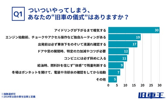 旧車オーナーにとって、エンジンをかけるまでの準備は「儀式」のようなもの。最も多かったのは「暖気」で、半数以上が「アイドリングが下がるまで待つ」と回答。