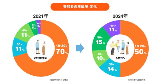 2024年12月2日現在、登録者数は64,000人以上。Z世代(1990年代半ばから2010年代前半生まれ)を中心に、近年ではシニア層にも利用が広がりつつあります。
