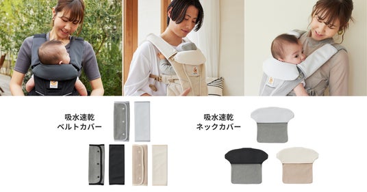 抱っこひもをより快適にお使いいただくために開発したのが「吸水速乾ベルトカバー」と「吸水速乾ネックカバー」です。