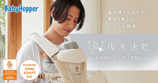 株式会社ダッドウェイ(本社:神奈川県横浜市、代表取締役社長:大野 浩人)は、オリジナルブランド『BabyHopper(ベビーホッパー)』より、抱っこひもアクセサリーの「吸水速乾ベルトカバー」と「吸水速乾ネックカバー」を発売しました。