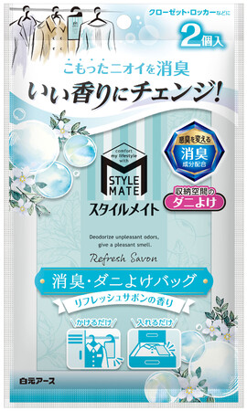 白元アース株式会社(本社:東京都 台東区、社長:吉村一人)は、「スタイルメイト」シリーズより、収納空間用消臭・ダニよけ剤『スタイルメイト 消臭・ダニよけバッグ リフレッシュサボンの香り』を2月1日よりリニューアル新発売いたします。