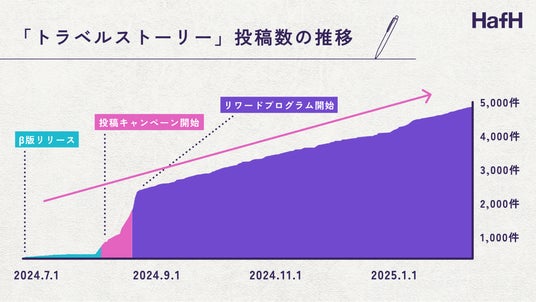 2024年8月のリリース以降、わずか半年で投稿数は約5,000件増加し、HafHユーザーの間で「トラベルストーリー」の活用が広がっています。