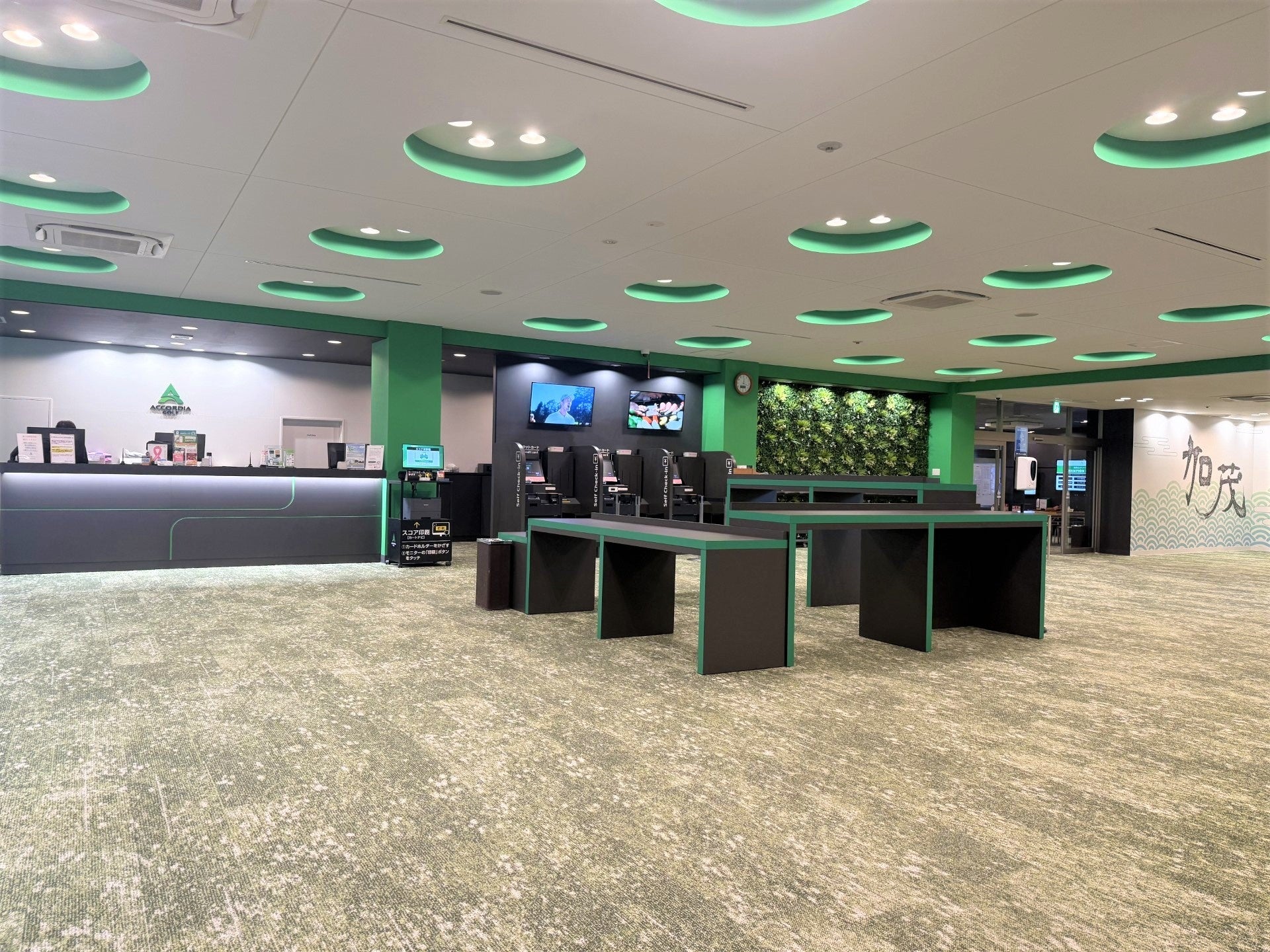 このたびのリニューアルでは、ご来場いただく皆さまに快適で心地よくお過ごしいただけるよう館内の主要施設を見直しました。緑を基調としたロビーは開放感と癒しを感じられる空間に生まれ変わり、カラフルなカーペットを用いたレストランにはボックス席も新設し、より落ち着いたひとときをお過ごしいただけます。また、女性スペースも重点的にリニューアル。ブルー系の壁紙に白いロッカーを配した女性ロッカールームや、使いやすくおしゃれになったパウダールーム、拡張した女性浴室など、明るく清潔感のあるスペースとなりました。