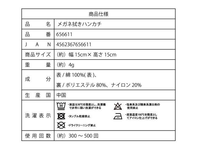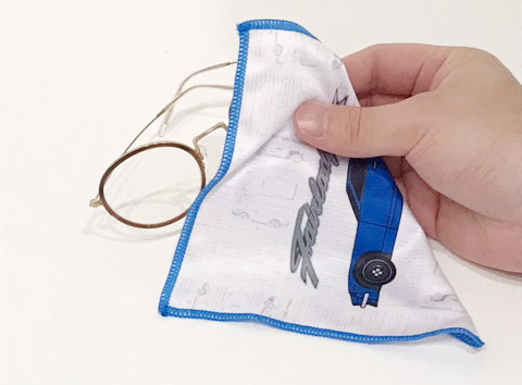 ●本製品を袋から取り出し、メガネなどのレンズの両面をムラなく ハンカチ全体を使いながら拭いてください。