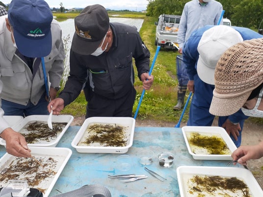 イベント「びっくりドンキー田んぼの生きもの調査」の様子