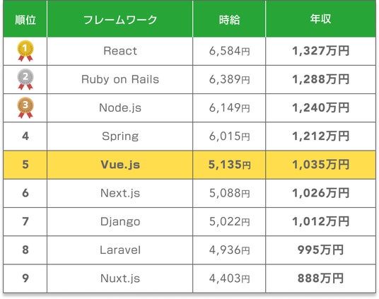2024年|年収が高い「フレームワーク」ランキング(プログラミング)