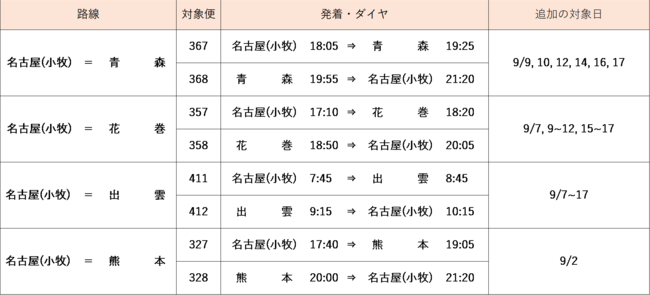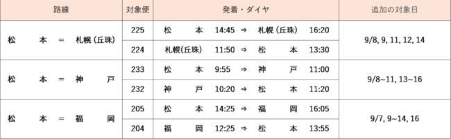 なお、9月2日(水)~9月17日(木)の各路線別の運航便・運航ダイヤの情報については、別添の資料をご参照ください。
