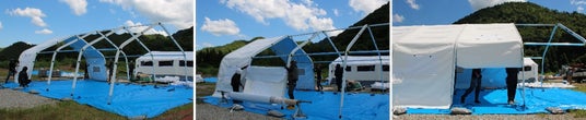 日本赤十字看護大学附属災害救護研究所と太陽工業が共同開発、~レール式フレームで、少人数・短時間の設営と快適性を両立~