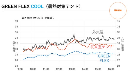 これにより、従来は熟練者を含む多人数を要していた大型 テントの設営を、「GREEN FLEX」は6名で約30分で行うことが可能となりました。