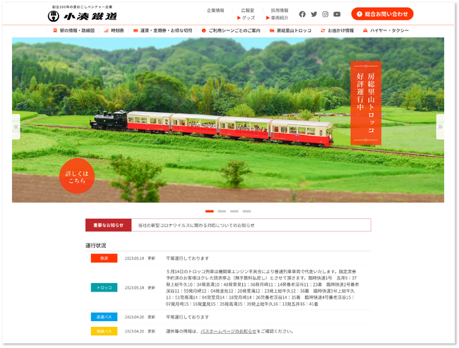 小湊鐵道株式会社(代表取締役社長:石川晋平、以下「小湊鐵道」)では、2023年4月20日に自社サイトの全面リニューアルを実施いたしました。