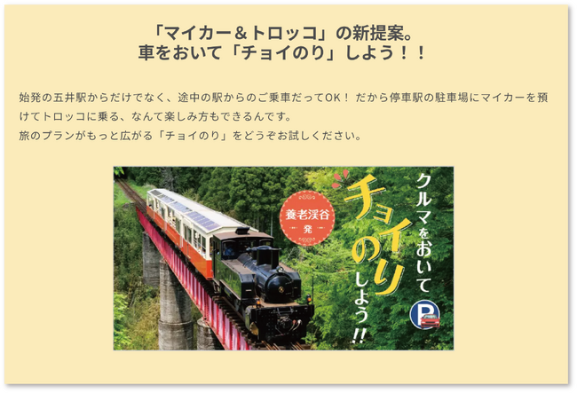 観光列車として人気の「房総里山トロッコ」専用ページでは、トロッコの様々な楽しみ方をご覧いただける「イチオシ旅プラン」「チョイ乗り」のご紹介や、沿線の散策マップなどをご覧いただけます。Web上で指定券の予約ができる専用サイトへの導線もあり、旅行前の事前準備にも十二分にご活用いただけるページへと生まれ変わっています。