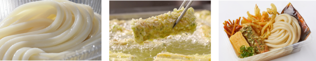 その他、温かいうどんも冷たいうどんも楽しめる人気の天ぷら入り、定番の「丸亀うどん弁当」も3種類ご用意しています。春の「丸亀うどん弁当」は、楽しめる味わいのバリエーションが増え、飽きが来ず、様々なおいしさを味わっていただけます。春の訪れを感じ始めるこの時期に、季節に合わせて進化し続ける手づくり・できたての「丸亀うどん弁当」を春の行楽などお好きな場所でお楽しみください。