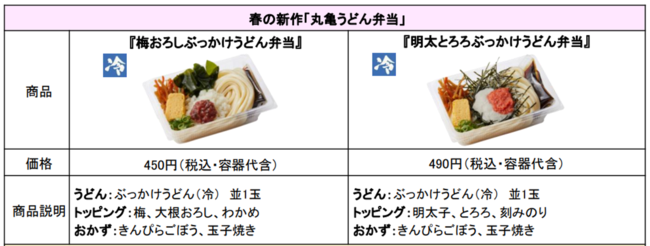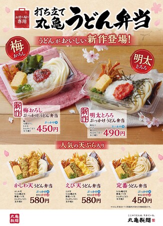 株式会社丸亀製麺(本社:東京都渋谷区、代表取締役社長:山口 寛)が展開する、食の感動体験を追求し、手づくり・できたてにこだわる讃岐うどん専門店「丸亀製麺」は、累計3200万食を突破するほど大好評の「丸亀うどん弁当」から、春の新作『梅おろしぶっかけうどん弁当』と『明太とろろぶっかけうどん弁当』を2023年3月7日(火)から全国の丸亀製麺にて期間限定で販売開始いたします。