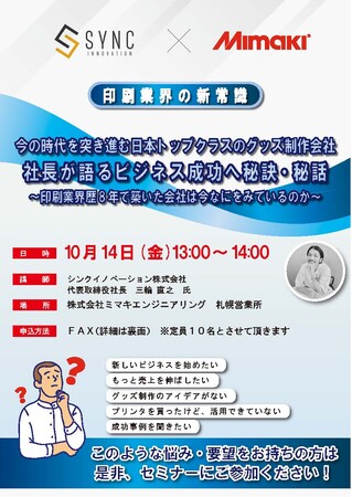 (株)ミマキエンジニアリング札幌営業所にて代表取締役による無料セミナーを開催いたします!