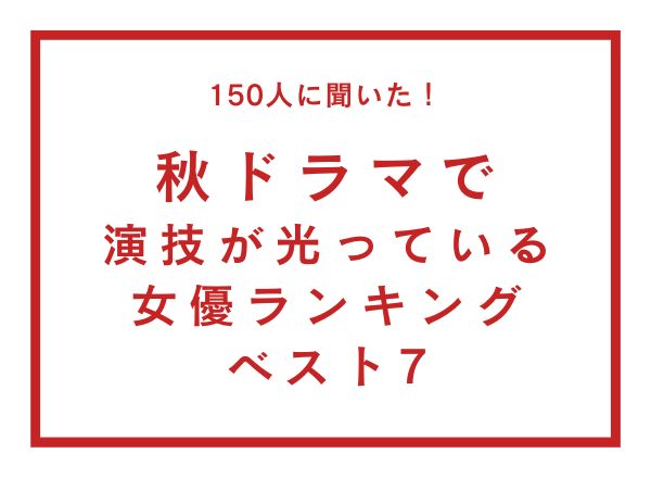 TVマガでは、「秋ドラマで演技が光っていた女優」について150人にアンケートを実施。その結果を、ランキング形式で出演作品と選んだ理由も合わせてご紹介します。