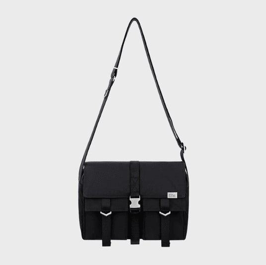 フロントのベルト、アイレット、サイドウェッピングストラップなどディテールを詰め込んだバッグ。