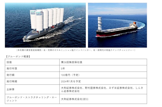 株式会社商船三井(社長:橋本 剛、本社:東京都港区、以下「当社」)は国内市場において公募形式によるブルーボンド(以下「本社債」)を2024年1月に発行することを決定しました。