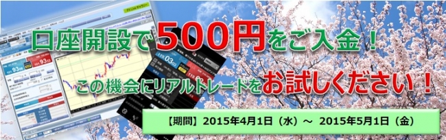 SBI FXトレードが提供する外国為替証拠金取引「SBI FXTRADE」は、2015年4月1日(水)より新規に口座開設頂いたお客様を対象に500円入金企画を実施しました。
