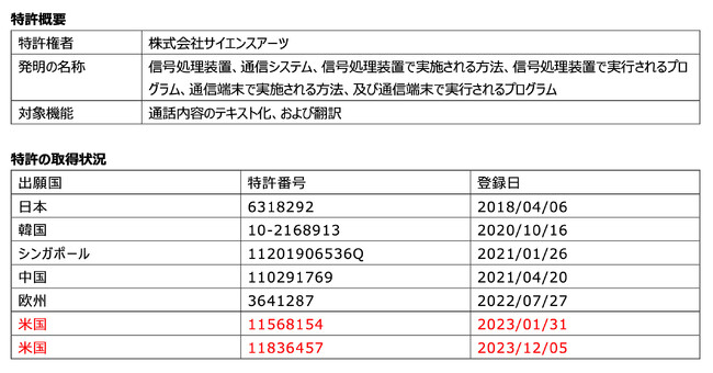 株式会社サイエンスアーツ(所在地:東京都渋谷区、代表取締役社長:平岡 秀一)は、PTT(Push-To-Talk)通信の音声通話におけるテキスト化、および翻訳通信技術(以下、本発明)を中国・欧州に続き、米国にて取得したことを発表いたします。
