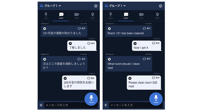 また、本発明には、テキスト化された内容の翻訳機能と、受信した端末で設定されている言語での読み上げ機能も含まれており、多国籍な現場における円滑なコミュニケーションを支援します。
