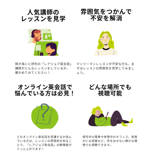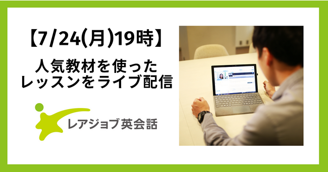 スキルの可視化と向上を支援する“AIアセスメントカンパニー”の株式会社レアジョブ(以下、レアジョブ)は、7月24日(月)19時より「レアジョブ英会話」のデモレッスンをライブ配信いたします。