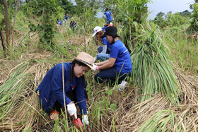 1994年に設立され、プリンターと複合機を年間50万台製造し世界各地に出荷する主力生産拠点であるODMTでは、「ODMT Green Project(注1) 」と称した環境保護活動を2008年から毎年実施しています。今回で10年連続10回目の植林となり、これまでに合計73,918本の植林をしています。当日は専門家の指導の元で、タイの指定保護樹木であるチーク、パドックなどの苗木を植えました。