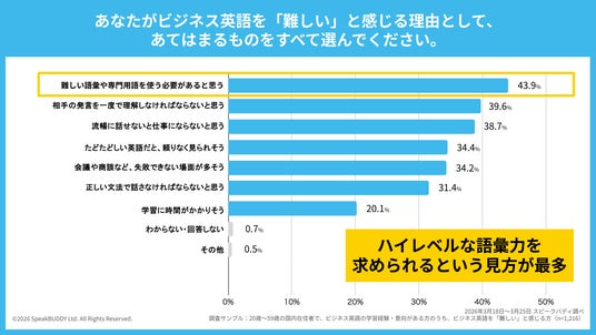 が上位を占め、「高い英語力がなければビジネス英語は使えない」というイメージが根強い様子が浮かび上がりました。