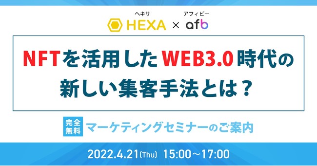 『NFTを活用したWEB3.0時代の新しい集客手法とは』HEXA(ヘキサ)×afb(アフィビー)による完全無料のマーケティングセミナーのご案内