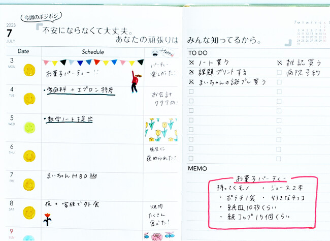 その過程で愛知県教育委員会の地域企業と連携した商品開発の実践と「地域協働ビジネススキルアップ事業*1」を知る事になり、2022年8月~2023年2月に「高校生を中心とした若年層がワクワクする手帳」を考え、製品化するプログラムを行いました。毎日が楽しく、前向きになる手帳「POZITE」(ポジテ)が考案され、一宮商業高等学校の生徒さんによる販売会では準備した60冊が2時間程で完売しました。今年は2年目の取組みとなります。