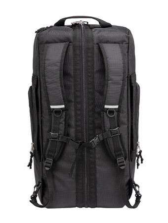 中央のメインファスナーをサイド部分にまで大きく開くことができ、荷物の出し入れがしやすい“がま口タイプ”のボストンバッグが新登場。50Lの大容量ながら、ショルダーハーネスを使用すればバックパックスタイルとしても使用可能なため、長距離の移動の際にも便利です。