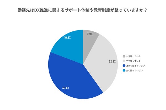 ● 一方、約6割が「勤務先でDX推進に関するサポート体制や教育制度が整っていない」と回答。