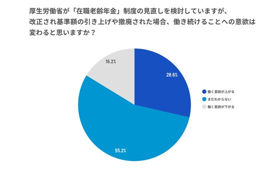 ● 厚生労働省の「在職老齢年金」制度の見直しにより、約3割が「働く意欲が上がる」と回答。