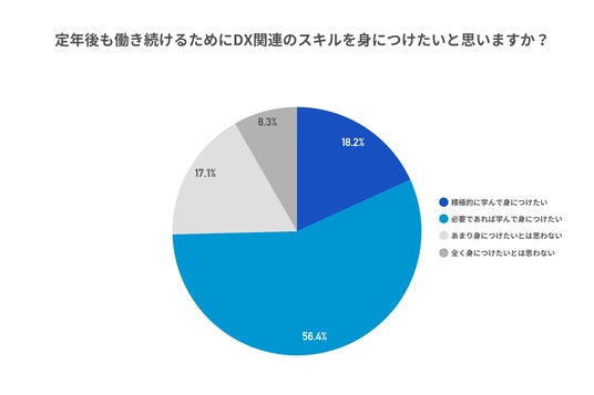● 約7割が定年後も働き続けるためにDX関連のスキルを学んで身につけたいと回答、DX関連のスキル習得に意欲的であることが明らかに。