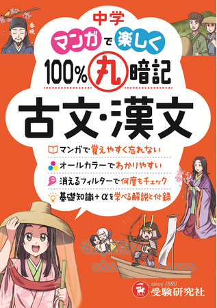 株式会社増進堂・受験研究社(本社:大阪市西区、代表取締役:岡本明剛)は、中学 古文・漢文の読解の基礎となる単語・文法・作品・時代背景などの重要事項を1冊に凝縮し、マンガの登場キャラクターと一緒に学ぶ『中学 100%丸暗記 古文・漢文』を2023年8月30日より発売いたします。