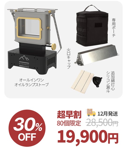makuake先行予約で30%OFF!年内配送予定!コンパクトで暖炉も調理も!便利なオールインワン オイルランプストーブ!