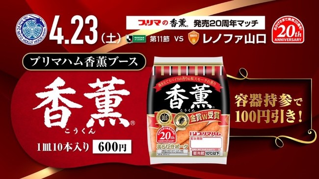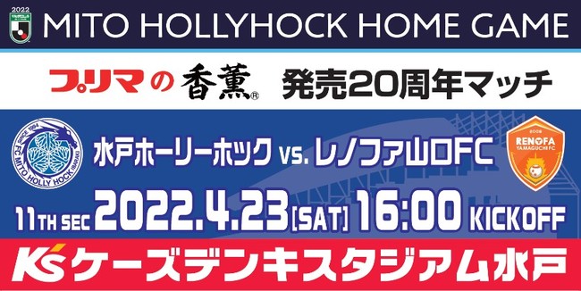 株式会社フットボール水戸ホーリーホック(代表取締役社長:小島耕 以下、水戸ホーリーホック)は、4月23日(土)開催の2022明治安田生命J2リーグ第11節レノファ山口FC戦を、プリマハム株式会社様にご支援いただき『プリマの香薫発売20周年マッチ』として開催することお知らせいたします。