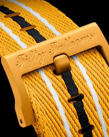 PACIFIC OCEANはケースのカラーにマッチする新しいイエローオレンジのNATOストラップを採用。