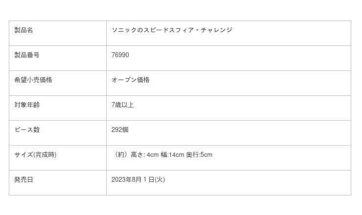 レゴジャパン株式会社(所在地:東京都港区、以下レゴジャパン)は、セガの人気キャラクターであるソニックとレゴグループのコラボ商品である「レゴ(R)ソニック・ザ・ヘッジホッグ(TM)」シリーズにて、「ソニックのスピードスフィア・チャレンジ」「テイルスのラボとトルネード号」「エミーのどうぶつレスキュー島」「グリーンヒルゾーンのループチャレンジ」のラインナップを公開し、2023年8月1日(火)より販売いたします。