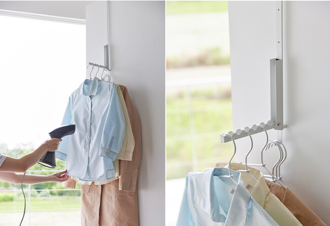 使わない時は折り畳める衣類スチーマー用ドアハンガー!
