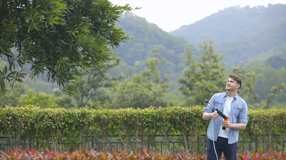 同梱の給水ホースを水に入れて本体の電源ボタンを押すだけで、水が自動的に吸い上げられて噴射されますので、水道なども一切不要で水源探しに苦労しません!
