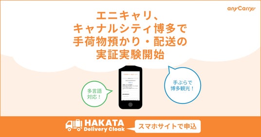 株式会社エニキャリ(以下、エニキャリ)は、株式会社FJアーバンオペレーションズ(以下、FJアーバンオペレーションズ)と提携し、2024年12月1日から九州有数の大型複合商業施設「キャナルシティ博多」内の手荷物預かり所「HAKATA Delivery Cloak」にて、来館者向け手荷物預かり・配送サービスの実証実験を開始します。本実証実験は、手荷物や購入品を当日中に博多・天神エリアのホテルまたはJR博多駅へ配送します。多言語対応の専用スマホサイトを活用し、インバウンドをはじめとする観光客の利便性向上と手ぶら観光による地域経済への貢献が期待できます。