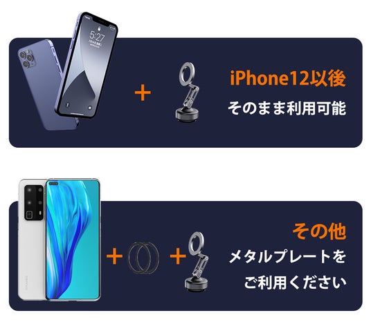 ※非MagSafe対応のスマートフォンやスマホケースには、メタルプレートをケースの外側に取り付ける必要があります。メタルプレートが1枚付属します。