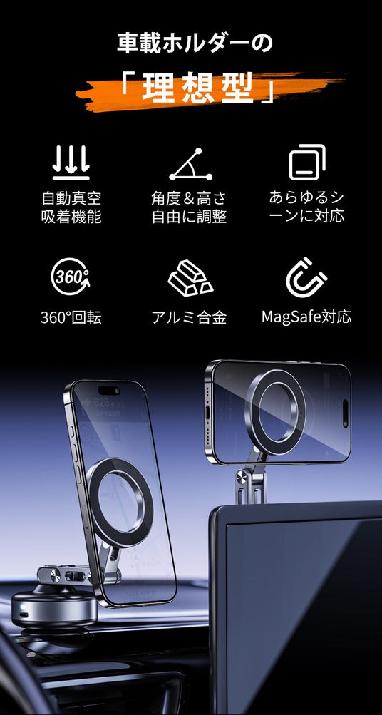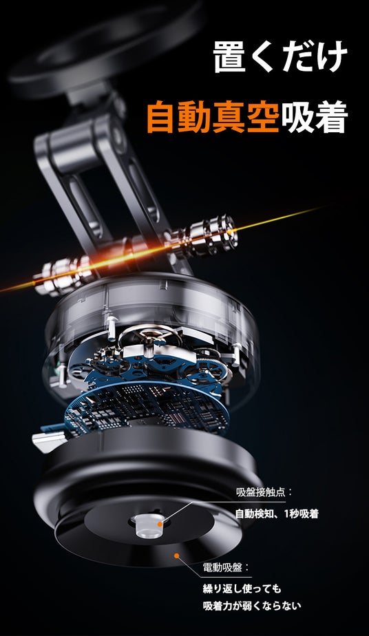 1.【設置簡単】置くだけ、1秒自動真空吸着!強力固定ながら、ワンボタン脱着可能、傷も跡も残らない。