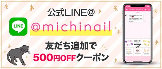 「ミチネイル」は、丸井織物株式会社が提供するECサイトです。ネイルチップを始めとするネイル関連商品を取り揃え、手元から美しくなりたい人を応援しています。そんな「ミチネイル」では、毎日新作を発表中。今なら、公式ラインのお友だち追加で500円クーポンをゲットできます!