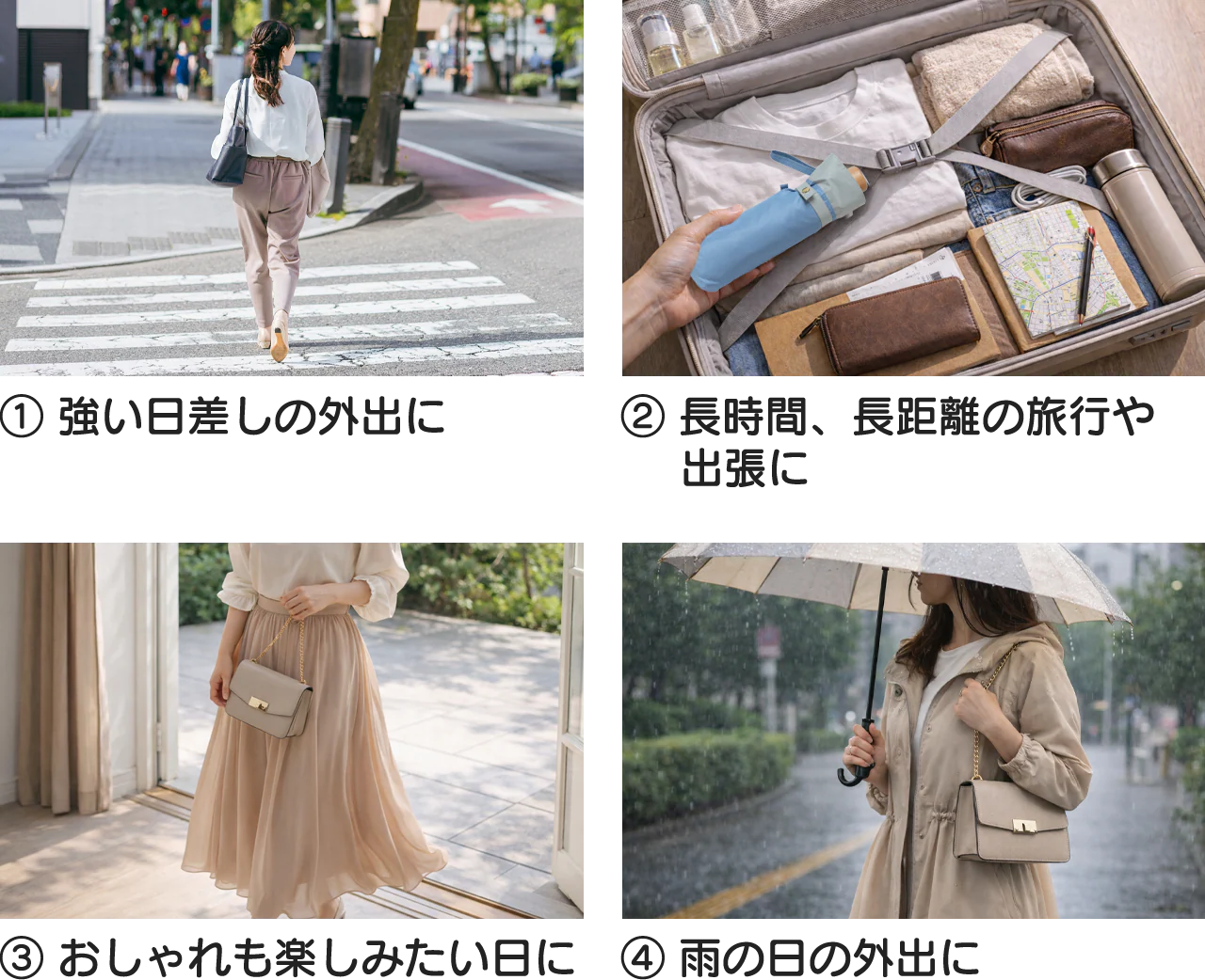 対応シーン:晴れ・曇り・雨の日(晴雨兼用、耐水圧約25,000mm)
