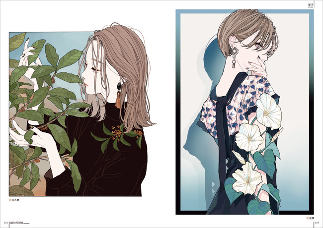 本書は、「花×女性」をメインテーマとしたアンソロジーイラスト集です。