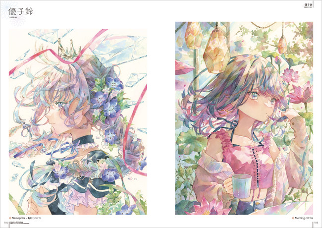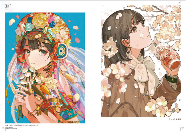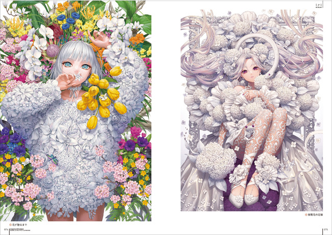 女性と女性を彩る花々との華やかな共演を魅力的に描いた、新進気鋭の作家12名による美麗なイラスト142点を収録。巻末には掲載作家のインタビューも掲載しています。