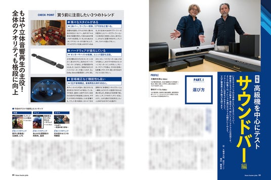 「映画館のある家」を実際に訪ねてのホームシアター実例紹介、オーディオビジュアル製品のベストバイを大発表する「VGPアワード2026」の全授賞内容をお届け。さらに注目の新製品が続々と登場している「スマートプロジェクター」と「サウンドバー」を特集、トレンドガイドと横並びテストを実施しています。これからホームシアターを構築されたい方、さらなるグレードアップを目指す方にお役立ちの本誌を、ぜひお楽しみください。