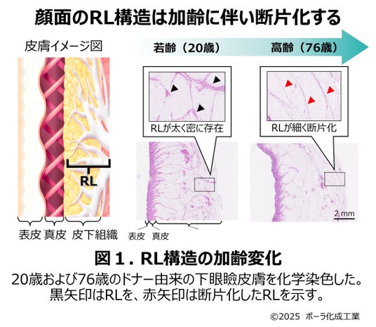ポーラ・オルビスグループの研究・開発・生産を担うポーラ化成工業株式会社(本社:神奈川県横浜市、社長:片桐崇行)は、顔面のたるみ印象に関連することが示唆されている線維構造RL(Retaining Ligament)の研究を進め、以下を発見しました。